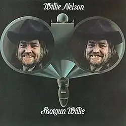 Wexler had encouraged Nelson after singing the gospel album to start with the new one, to couple old material with new, and covers.[11] He initially recorded twenty-three tracks along with his and Sahm's band, but Nelson still was not inspired. He wrote the title song after one of the sessions.[7] Pacing in his hotel room, he went to the bathroom, where he sat on the toilet and took the empty envelope from a sanitary napkin from the sink, and penned the song on that.[12] The title of the song refers to the nickname Nelson received after his daughter, Susie, warned him of the domestic abuse suffered by her sister Lana. Nelson drove to Lana's house, where he fought with her husband Steve Warren, and threatened to kill him if he repeated the assault. Soon after Nelson returned home, Warren arrived in his truck with his brothers. The men shot at the house with .22 caliber rifles. In response, Nelson and Paul English shot at the aggressors that retreated. When they returned later, Nelson took English's M1 Garand and shot the truck, causing them to surrender.[13][14] He completed the rest of the song with a reference to John T. Floore, owner of the honky-tonk Floore's Country Store.[15] After hearing the completed song, Wexler decided that the album was to be named after it.[16] Nelson later recalled, "Kris Kristofferson told me later the song 'Shotgun Willie' was 'mind farts.' Maybe so, but I thought of it more as clearing my throat."[17]