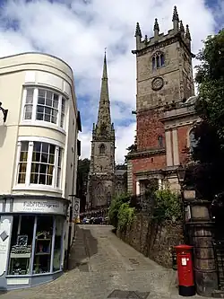 A town hall was built in the Market Place on the site of an ancient guildhall in 1730;[97] it was demolished and a new combined guildhall and shirehall was erected on the site in 1837.[98]