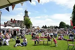 In 1581, Sir Henry Sidney, celebrated the feast of St George, on 23 April, in this town, with great splendour: a solemn procession went from the Council House to St Chad’s Church, the choir of which was fitted up in imitation of St George's Chapel, Windsor Castle with the stalls decorated with the arms of the Knights of the Garter; on the conclusion of divine service Sir Henry devoted the afternoon to feasting the burgesses.[32]