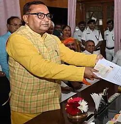 Shri Bhagwan Singh Kushwaha is a politician from Bihar, who has also served as a minister in the Government of Bihar. He is a son-in-law of Jagdish Mahto— the founder of Naxalism in Ekwari village of the Bhojpur region of Bihar.[3] He has assumed several important posts in various regional political parties of Bihar, which include Communist Party of India (Marxist–Leninist), Rashtriya Janata Dal, Janata Dal (United), Lok Janshakti Party, Jan Adhikar Party Loktantrik and Rashtriya Lok Samata Party.[4][5] Kushwaha once headed JD(U)'s youth wing and has also been Minister for rural development in Bihar.[6] In July 2024, he was elected to the Bihar Legislative Council. He was nominated by the Janata Dal (United) as its candidate to fill the vacancy of the post caused by end of the tenure of another leader of the party.[7]