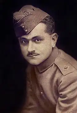 After the outbreak of war, Welinkar was commissioned a lieutenant in the 3rd Gwalior Lancers, a Gwalior State regiment of the Imperial Service Troops, and was on the staff of the Maharaja of Gwalior.[2] Becoming interested in aviation, he took lessons at a flying school at Hendon and obtained a Royal Aero Club certificate in August 1916.[3] With 50 hours of flying time,[5] Welinkar then applied for a commission in the Royal Flying Corps on 22 November 1916, but he was refused a commission due to his ethnicity and instead encouraged to be a member of aircrew as a mechanic.[1] After securing a recommendation from Brigadier-General Sefton Brancker, Welinkar enlisted in the Oxfordshire and Buckinghamshire Light Infantry on 13 February 1917, and was posted to No. 6 Officer Cadet Battalion of the RFC from the same date.[1]