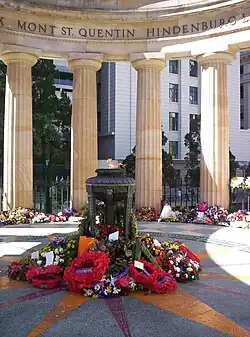 Each year, on ANZAC Day, on 25 April, a Dawn memorial service is held at the Shrine of Remembrance, with wreaths being laid around the 'Eternal Flame' in memory of those who died in conflict.[3][4][5]