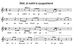 "Shtil, di nakht iz oysgeshternt"[1] ("Quiet, the Night is Full of Stars"; Yiddish: שטיל, די נאַכט איז אױסגעשטערנט)[2] or "Partizaner lid" ("Partisan Song")[3] is a Yiddish song written in summer 1942 by Hirsh Glick, a young Jewish inmate of the Vilna Ghetto.[4] It is set to a Russian folk melody.[3]