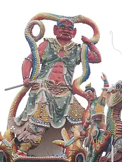 Shunfeng'er next appeared as a lieutenant of the Emperor of Flowering Brightness (t 華光大帝, s 华光大帝, Huáguāng Dàdì) in Yu Xiangdou's Journey to the South[11] and as a character in Xu Zhonglin's Creation of the Gods.[14] He was confused with the door god Yulü (t 鬱壘, s 郁垒, Yùlǜ).[11]
