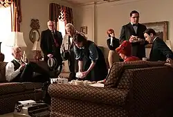 Reviewers commented on the plot's similarity to the archetypal heist film, several mentioning specifically Ocean's Eleven.[12][13][14] Sepinwall enjoyed particularly what he referred to as his "favorite part of any caper (or other kind of ensemble adventure) movie: the gathering of the team."[12] Slate's Patrick Radden Keefe also mentioned Seven Samurai, adding that, though the concept is not a new one, "I tend to enjoy these types of sequences...[a]nd in this instance, the fact that the team members were being poached from inside Sterling Coop made it all the more fun."[14]