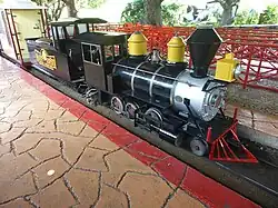 Siam Park City (Thai: สวนสยาม; RTGS: Suan Sayam) is an amusement and water park in the Khan Na Yao district of Bangkok, Thailand. It opened in November 1980. For the transport of visitors a miniature railway in the way of a light railway was installed. The line was built in a broad circuit around the area. Due to old maps, an old photograph and some still existing tracks (as seen in September 2016), it is certain that the railroad line left the inner terrain of the park at least in the southbound section behind and circled the waterpark installations. In a northward direction the still existing tracks end nowadays in front of the Dinotopia attraction. The line was a single-way track with, had a gauge of 2 ft, several sidings and served some stop stations. The storage sidings for the units, hauled by a diesel locomotive, were behind the present-day attraction Log Flume.