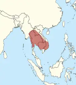 It is found in Southeast Asia, including Thailand, Cambodia, Vietnam, and Laos. May occur in eastern Myanmar but no records are known.[3] It has been reported from Taiwan where it was released to the wild based on folklore Buddhist practices.[11] It occupies a range of habitats including lowlands, hills, plains, and woodland.[5] It can also be found in jungle habitat and it is sometimes attracted to human settlements because of the abundant populations of rodents in and around these areas.[12]
