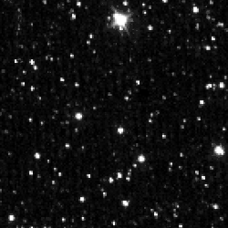 Cassini images of Siarnaq moving among background stars on 30 December 2013. The moon was observed 22 million km (14 million mi) away from the spacecraft.