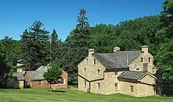 The Sibley Historic Site is the site of Henry Hastings Sibley's home, who was the regional manager of the American Fur Company and Minnesota's first governor. It is one of the 26 historical sites that are operated by the Minnesota Historical Society. Located in what is now the city of Mendota, the site consists of four limestone buildings and a large lawn area. Three of the buildings are open for touring, including a fur company cold store from 1843 and the 1840 home of fur trader and hotelier Jean-Baptiste Faribault.