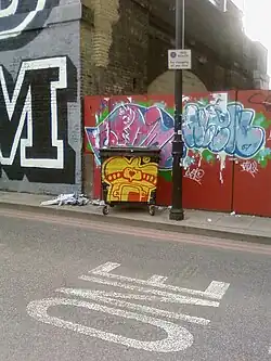 7. ^ Crompton, Sarah (20 August 2012). "Graffiti's grandmasters make their mark". The Telegraph (London). Retrieved 17 September 2012. But street art is now a profitable career. The fine arts graduate known as Sickboy, for example, covers waste bins with distinctive temple icons: they sell for £50,000. To the unconvinced and the underwhelmed, this is the perfect summation of the madness of the contemporary art world – both actually and metaphorically art as rubbish.