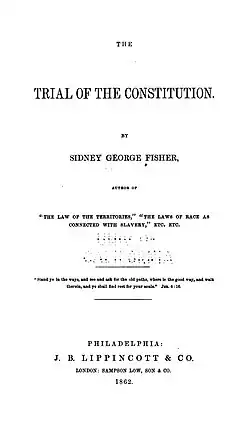 - The Trial of the Constitution (J.B. Lippincott & Co., 1862; reprints in 1969, 1972, 2003)