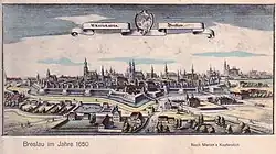 The siege of Breslau was a siege in the Third Silesian War (part of the Seven Years' War) that began on 7 December 1757 and ended on 19 December 1757. After the defeat at Leuthen, the Austrians withdrew into Breslau. The combined Austro-French garrison of approximately 17,000 men, commanded by Lieutenant General Field Marshal Soloman Sprecher von Bernegg, faced a Prussian army commanded by Frederick the Great.