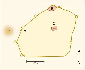 The defence of Rennes was undertaken by Guillaume de Penhoët, nicknamed the Twisted Lame One, who lived in the castle, helped by Bertrand de Saint-Pern, the commander of the town and godfather of Bertrand de Guesclin.[5]