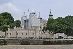 The city's Common Council acquired several bombards from a royal depot, and mounted them on the south bank of the River Thames opposite the Tower. Their fire brought down part of the Tower's curtain walls and terrified some of the noble families who had taken refuge inside. Lord Cobham, with some armed citizens blockaded the Tower from the City, while Sir John Wenlock with more militia under prominent mercer John Harowe invested the Tower from St Katherine's to the east. There were continuous clashes between the garrison and the besiegers.[18] At one stage, Scales and the Lancastrian nobles in the Tower sent a letter to the city's council, demanding to know why the council was making war on them. The council replied that Scales had begun making war on the city, killing and maiming men, women and children by gunfire.[18]