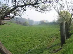 The fertile loess soils in this region of north Germany are dissected by a host of brooks and headstreams, which used to flow in marshy V-shaped valleys. Not all Sieke are or were, however, crossed by a stream, but at the very least they always consisted of wet ground. During the course of medieval and early modern cultural and agricultural history, people developed these natural landforms by cutting into the edges of the V-shaped valleys (so-called Wiesenbrechen by Wiskenmaker[1]) and turning them into trough and box valleys, and any streams were regulated such that they ran in straight beds along the edges of such a box valley. The aim of these measures was the create a wet grassland in the now broad, accessible stream meadows which could then be extensively cultivated. In addition the cut, grass sods or plaggen were able to be used to fertilise the surrounding fields (Plaggendüngung). In Ravensberg Land, sieke are generally narrow, trough valleys interspersed in the countryside and lying next to cultivated areas of slightly higher ground or kuppen (Plaggenesche), which were raised by the grass sod fertilisation.