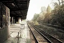 As a result of construction of the Berlin Wall and the boycott of the S-Bahn in West Berlin, the number of passengers fell sharply from 1961, so that there was a daily average of only 67 passengers in 1976. The northern passing loop was closed in 1968 and the station became unstaffed in the evening in 1976, which was then uncommon. As a result of the strike by West Berlin employees of Deutsche Reichsbahn in 1980, S-Bahn operations on the Jungfernheide–Spandau section ended on 17 September of that year. The station fell into disuse and the station building was demolished in March 1987 and the platform was demolished in November 1996. During the construction of the Hanover–Berlin high-speed railway, the remaining remnants were demolished.