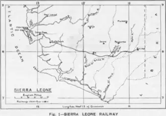 The Sierra Leone Government Railway operated in Sierra Leone from 1897 to 1974. It was unusual in that it formed a national railway system constructed solely to a 2 ft 6 in (762 mm) narrow gauge, whereas in other countries, gauge of such a narrow width was usually confined to feeder railways.The Sierra Leone railway tracks terminated at Pendembu and not Daru.