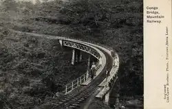 Most of the line was built with a 1 to 50 (2%) gradient, but some sections were as steep as 1 to 39 (2.6%). The Hill Station line had a gradient of 1 to 22 (4.5%). Some 139 bridges had a span over 20 feet (6.1 m) on the line, the longest being of six spans and 716 feet (218.24 m) across.