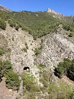 The early hominids in the region would have moved from caves on the coast to caves in the Sierra de Tejeda on a seasonal basis. The 40,000 year old bones of a Neanderthal man have been found in the Boquete de Zafarraya cave in Alcaucín, in a spur of the Sierra de Alhama just west of the Sierra de Tejeda.[6] Canillas de Aceituno is at the foot of the Sierra, at an altitude of 649 metres (2,129 ft), in the region between the marbles of the Sierra de Tejeda and the schist land lower down in the slopes of the Almanchares river basin. The Fajara cave was used in the Neolithic era, and the Rábita cave shows evidence of iron ore extraction in Roman times.[20] Three bridges on the slopes of the sierra in the towns of Sedella, Salares and Canillas de Albaida are said to have a Roman origin, although their appearance today is medieval.[16]