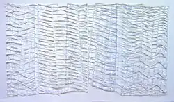 Donald Doe, curator, patient process 2001 exhibition at Grinnell College Museum writes, “For Stuart, who reads on topics ranging from the process of evolution to sub-atomic motion, her real enterprise seems a process of exploration that is not easily made verbal, a way, she says, of offering a “meta language that uncovers the nature of materials.”[6]