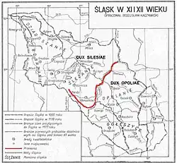 Silesian Przesieka, literally Silesian Cutting (Polish: Przesieka Śląska or Oseg, Silesian: Sylezyjske Ôdciyńcie, German: Schlesischer Grenzwald, Hag or Preseka, Latin: Indago) was a densely forested, uninhabited and unpassable strip of land in the middle of Silesia, spreading from Golden Mountains in the south, along the Nysa Kłodzka to the Odra, and then along the Stobrawa, reaching the towns of Namysłów and Byczyna in northern Silesia. Originally, the Silesian Cutting was a boundary, separating territories of two Western Slavic tribes, the Slezanie and the Opolanie. In the 12th century, along the Cutting a border of Lower Silesia and Upper Silesia was established.[1][2][3]