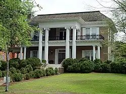 c.1905 | This house was commissioned by Dr. Hal Johnson in 1905 and took two year to complete. It was designed by Frank Lockwood of Montgomery and was constructed by Robert S. West of Talladega. It features a neoclassical style with Doric columns, gray brick, with matching limestone window beams secured by a key stone. |