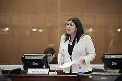 In 1988 she became an elected councilor of Ibarra, holding the position until 1991. In 1990 she entered the National Congress leading the group of women called Montoneras Patria Libre and made the symbolic delivery of the presidency of parliament to the socialist Edelberto Bonilla.[1] Montoneras Patria Libre was a radical organisation who took political hostages and issued ultimatums.[2]