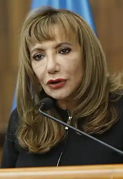 On 13 June 2019—after her official term as magistrate expired—she tendered her resignation to Congress, which didn't accept it.[11] On 13 October 2019, she was again appointed president of the Supreme Court by her peers at the same.[12] By October 2022, the legislative body had not elected for three years magistrates for the new term, due to a series of irregularities and legal actions. Valdés and her peers continued in their positions in the Court, required by law.[13] Although the Guatemalan Constitution provides for only a single 5-year period for the magistrates,[14] the Constitutional Court had ruled that per Article 71 of the Law of the Judicial Organism (Spanish: Ley del Organismo Judicial), the bench needed to continue if no successors had yet been appointed.[12]