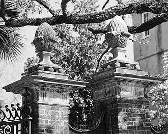 - ^ John P. McDermott (April 16, 1997). "'Pineapple Gates' mansion sold for $3.1 million". Charleston News & Courier. p. 1A. Retrieved January 15, 2013.