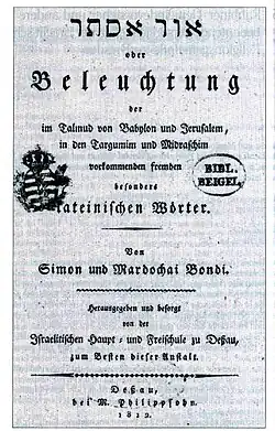 Simon Bondi (Yiddish: שמעון באנדי, romanized: Shimʻon Bondi; 1774 – 20 December 1816)[2] was a German maskil and lexicographer of the Talmud.