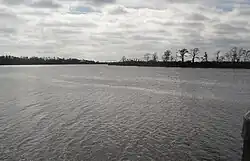 In 1806 Favre began cultivation of land on the Pearl River in what became Hancock County, Mississippi.[2] Favre's land holdings were extensive, and his will mentions eight different plantations totalling over 5000 acres in area.[1] He also acquired 57 slaves shortly before his death, as they were not mentioned in his will, but later became prominently mentioned during the settlement of his estate.[1] The October 1814 inventory of his personal property includes a list of the 57 slaves, giving the name, age, and value of each.[1] The oldest was 80 and valued at $5.00, while the most valuable was a 30-year-old "cow hunter" valued at $900.[1] Collectively, the slaves were valued at just under $15,000. The inventory also mentioned 6200 arpents (5247 acres) of land valued at $2410, a schooner named Pearl, and 450 head of cattle.[1]