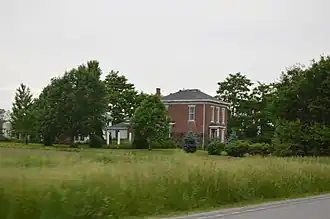 Simpson-Breedlove House is a historic home located at Union Township, Boone County, Indiana. It was built about 1865, and is a two-story, cubic, transitional Greek Revival / Italianate style brick farmhouse. It has a low hipped roof with a flat deck on top.[2]: 5