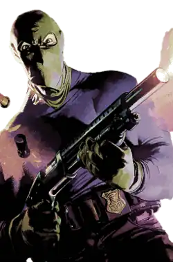 Stanley "Stan" Carter was born in Fort Meade, Maryland. He was an agent of S.H.I.E.L.D. working in research and development. He was injected with experimental drugs to increase strength and endurance, but when the program was designated too dangerous it was discontinued. Carter became violent and resigned from S.H.I.E.L.D., eventually becoming a detective with the New York City Police Department. After his partner was killed by several young criminals, Carter became obsessed with killing anyone who "sinned" by abusing authority.[2]