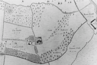![]() Sinai Park House and estate on a map from the late 1750s | |