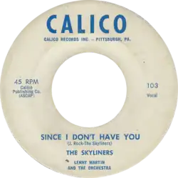 "Since I Don't Have You" is a song written and composed by Jackie Taylor, James Beaumont, Janet Vogel, Joseph Rock, Joe Verscharen, Lennie Martin, and Wally Lester. It was first a 1958 hit single for the doo-wop group the Skyliners on the US Billboard Hot 100. Country music singer Ronnie Milsap had a hit with the song in 1991. American hard rock band Guns N' Roses also had some success in 1994 with their version of the song which reached the top 10 on the UK Singles Chart.