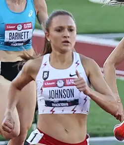 Sinclaire Johnson (born April 13, 1998) is an American middle-distance runner.[2] She is the 2022 US champion over 1500 m and has represented her country at the 2022 and 2023 World Championships.[3] Competing for Oklahoma State University, she won the 2019 NCAA 1500 m title.