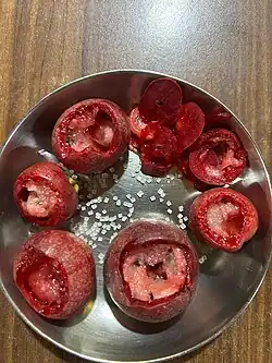 Kokum is a staple ingredient in regional cuisines, especially in Gujarat, Maharashtra, and southern states. Its souring qualities make it an excellent substitute for tamarind, enhancing coconut-based curries, vegetable dishes, and fish curries. As a key ingredient in Konkani cuisine, Kokum is used in various forms, including chutneys, pickles, and as a whole ingredient in dishes.[1]