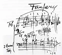 The Sinfonietta (subtitled "Military Sinfonietta" or "Sokol Festival") from 1926 is a late work for large orchestra (of which 25 are brass players) by the Czech composer Leoš Janáček. It is dedicated "To the Czechoslovak Army" and Janáček said it was intended to express "contemporary free man, his spiritual beauty and joy, his strength, courage and determination to fight for victory".[2] It started by Janáček listening to a brass band, becoming inspired to write some fanfares of his own. When the organisers of the Sokol Gymnastic Festival approached him for a commission, he developed the material into the Sinfonietta. He later dropped the word military. The first performance was in Prague on 26 June 1926 under Václav Talich.