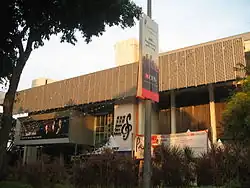The building was designed in modernist style by three architects from the Malayan Architects Co-Partnership – Chan Voon Fee, William Lim, and Lim Chong Keat.[4][8] The SCH is five stories tall and air-conditioned,[9] with a natural ventilation system integrated into the building design due to Singapore's tropical climate.[8] The building is capped with a cantilevered roof and terraces, which are supported by concrete columns.[6] The V-shaped roof collects rainwater which drains through the central downpipe. The interior walls and ceilings are crafted from local timber such as merbau and mersawa,[6] serving as an expression of local identity.[4] The walls are also covered with mosaic tiles of Malay mat patterns, some retained from previous renovations.[4][10] Provisions on the roof allowed for a penthouse and garden to be built.[6]