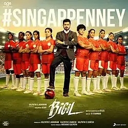 - ^ Kalpathi, Archana (23 July 2019). "A girl is often described as beautiful delicate fragile and kind hearted. We give u strength courage determination and the power to achieve anything she wants. #Singappenney START WAITING #Bigil @Ags_production @actorvijay @arrahman @Atlee_dir @Lyricist_Vivek @SonyMusicSouth". @archanakalpathi. Retrieved 25 July 2019.