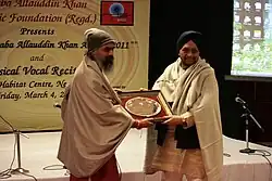 Surinder Singh (right) of Singh Bandhu receiving the Baba Allauddin Khan Award, 2011