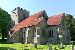 The Anglican parish church, dedicated to St Mary, has Anglo-Saxon nave walls and massive square tower. The aisles were added later. This was a hundredal church, the central church of the Hundred of Singleton, a Saxon administrative grouping of parishes. The tower has three Saxon windows and a Saxon doorway leading into thin air high up in the nave, showing that there was once an upper room above the nave.[13] It is likely that the priests for the churches in the hundred would have lived in this room. The Saxon tower arch was rebuilt in the twelfth or thirteenth century with a pointed arch. The pews are from the Tudor period. The church is a Grade I listed building.[14]