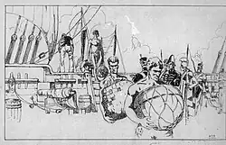 In April 1814, Gamble began to rig Seringapatam and Sir Andrew Hammond with the intention of leaving the island. When signs of mutiny appeared among his crews-largely made up of men who had been captured from British whalers-he had all the arms and ammunition put on board Greenwich. But, in spite of his precautions, the mutineers captured Seringapatam on 7 May, and Lt. Gamble was wounded in the fight. (The mutineers consisted of men who had originally served on Greenwich and Sir Andrew Hammond.) They sailed her to Port Jackson,[12] after repelling a second attack by Gamble and his men.
