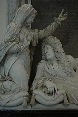 Russell died at the age of 68 and was buried at Strensham on 2 February 1706.[1] The tomb was designed by Edward Stanton.[3]