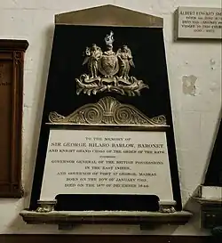 Wall memorial to Sir George Hilaro Barlow in St Andrew's Church in Farnham, Surrey