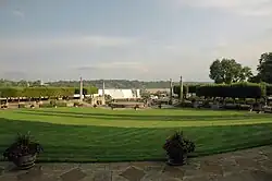 Designed as an amphitheatre, Oakes Garden Theatre was opened in September 1937. Oakes, a member of the Niagara Parks Commission, donated the land at the foot of Clifton Hill and Niagara Parkway to the commission in 1936. The landscape architecture was done by Howard and Lorrie Dunington-Grubb,[27] the building's architect was William Lyon Somerville with sculptures by Florence Wyle, Frances Loring and Elizabeth Wyn Wood.[28]