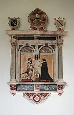He died on 3 February 1614 (N.S.).[4][5] A monument on the north wall of the chancel of Church of St Mary Magdalene and St Andrew, Ridlington, commemorates him, his first wife Frances Sapcote and their nine sons and seven daughters, noting his death as occurring in "February 1613" (O.S.).
