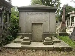 He died on 22 October 1855, aged 45.[6] He had no children, and the baronetcy passed to a cousin.[4] He is buried at Kensal Green Cemetery, London, on the north side of the main path leading from the entrance to the central chapel.