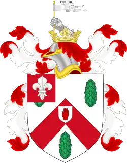 As he left no son to carry on the name, he adopted his grandson William Pepperrell Sparhawk, son of Colonel Nathaniel Sparhawk, on the condition that the boy agree to change his surname to Pepperrell, which he did by act of legislature.[7] The younger Pepperell graduated from Harvard College in 1766, became a merchant and inherited the bulk of his grandfather's business enterprises. He was chosen a member of the Governor's Council. In 1774 the baronetcy was revived in his favour. His wife, Elizabeth Royall, died at the age of 26 on October 9 1775, during the voyage to England and was buried in The Old Burying Ground in Halifax NS as they fled the American Revolution as Loyalists[8]