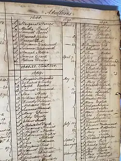 Both events are not mutually exclusive. Cotton Mather places the baptism the next day, March 23. The general court in which Cotton Mather played an active role may have made Phips free with the understanding that Cotton Mather would add him to the rolls of the North Church. Records of the North Church show Phips' name added to admissions. (Curiously, a "B" for "brother" is withheld as prefix to his name, unlike all others. See image.) Another book, mostly recording infant baptisms, lists Phips as "Admitted and Baptized." Phip's wife's name does not seems not to appear in the records at all. The admission and baptism of an adult was generally a somewhat drawn-out process over some weeks.[55] There seems to be no surviving record of Phips "coming to the table" to partake in the Lord's Supper, as only church members were invited to do.